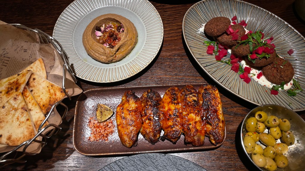 DOOD is a Persian restaurant, which is one of Dad’s favourite cuisines and thus, one I have a fair amount of experience with. The food here absolutely surpassed expectations and felt really decadent due to the slight twists on classic Middle Eastern dishes. We opted for the Bedouin Set Menu, which included a black chickpea hummus topped with truffle oil, harissa chicken wings, falafels, toasted pita, and spiced olives. The hummus was a standout, so creamy with a really rich, deep umami flavour – I think that’s due to the black chickpeas – a must-have if you visit. The wings were incredibly tender, with a lovely char, because they’d been cooked over an open flame. The falafels were pretty good, although they fell victim to a classic falafel problem of being a tad dry, and the pita and olives were, of course, lovely.